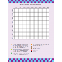 Na każdej stronie czekają zakodowane obrazki do odszyfrowania – wystarczy zamalować odpowiednie kratki lub połączyć kropki według kodu, by odkryć ukryte rysunki.